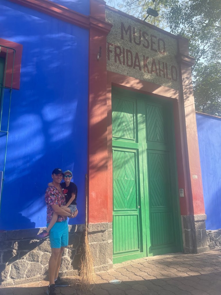 On Saturday we went for a walk around Coyoacan. For breaky I had a churro and a cup of piña (pineapple). It was so yummy, especially the churro. I got the piña from the markets. Then on the way back we stopped to see Frida Kahlo’s house! It was all pure blue everywhere. We then decided to stop at a really nice café, that had the most delicious bread ever. It was chapala (it was so good I had 3 big pieces!). If you have never tried it before, it is a doughy piece of bread that has flour on top. I know right, it’s so good.