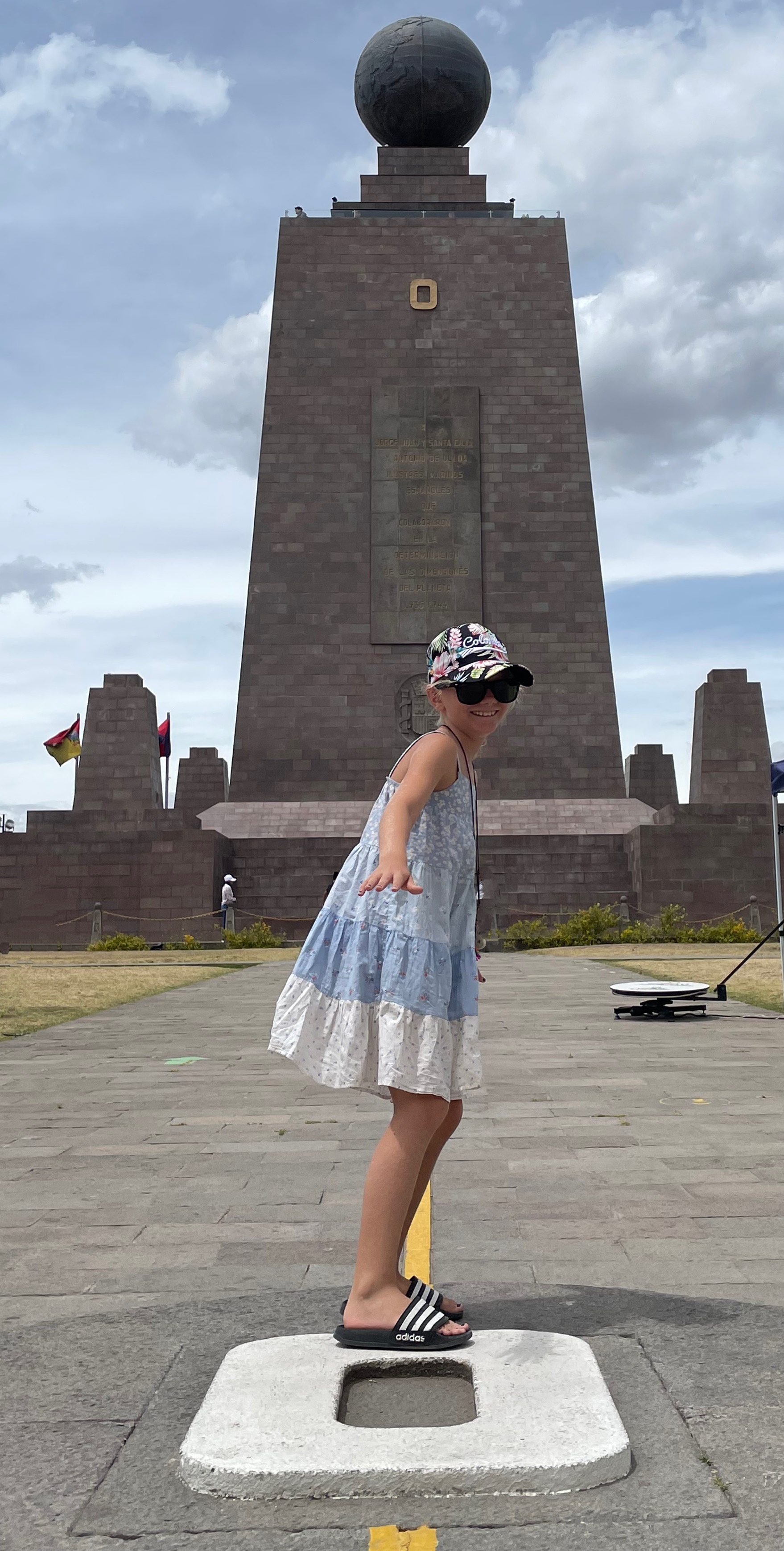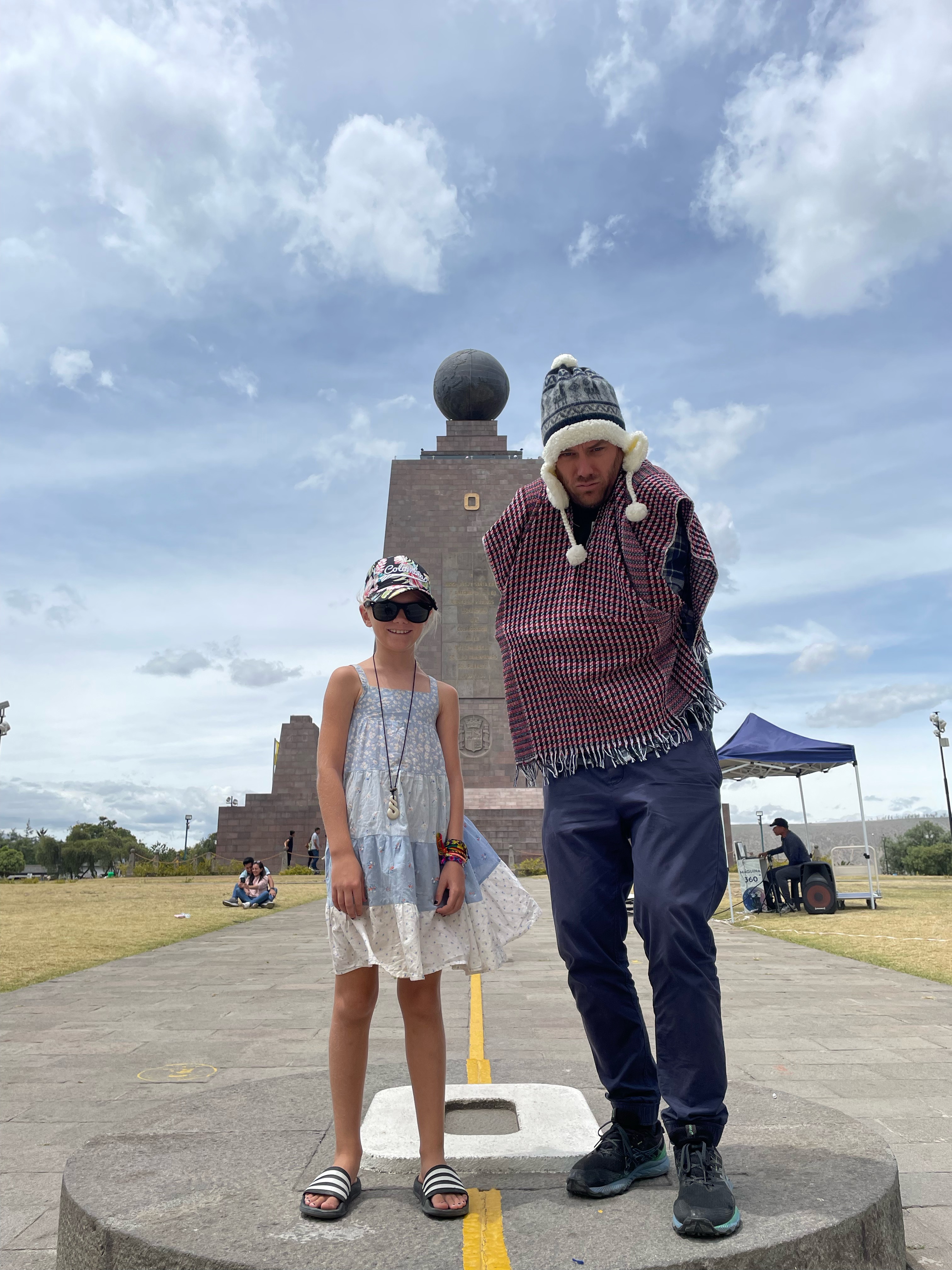 On the first day of week 36 we went to a whole new country called Ecuador. That means we were on the equator of the world! We went to the middle line of the whole entire world! There was this line you could stand on and you could be in both halves of the world at the same time. It was crazy. And there wasn’t only a line in the middle of the world, there was also a few trains, a playground, houses from a long time ago only made of bamboo and so many more cool things. We went on one of the trains, I played on the playground and we went inside the houses! It was really fun. At the equator line my dad and I dressed in 2 different outfits, I dressed in summer clothes, and dad dressed in winter clothes. We did that because it was winter on one side of the equator and summer on the other side. It was a really cool photo. It was actually a little bit colder on the winter side than the summer side! It was a really fun day.