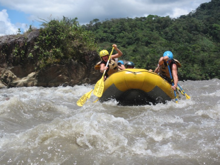The next day we went…. White Water Rafting (in this blog post l am going to call it WWR)! It was soo much fun. It felt like you were on a really fast wave on a surf board. And when you were on the BIG rapids you would always get sprayed all over your body. Like when you are just getting warm there is a big wave that make you cold again! When you opened your mouth you could not miss getting a splash of water in your mouth. The water tasted disgusting. It smelt like nothing at all. And the sights around us was lots of yucky water, mountains, birds, a theme park at the top of a mountain, LOTS of waterfalls and so many more cool views. At the end of the WWR there was a wave so big that someone behind me fell on top of me! It was crazy. Then we took the bus back to our hostel where I played some fun games with the Spanish speaking kids, trying my best to understand what they were saying.